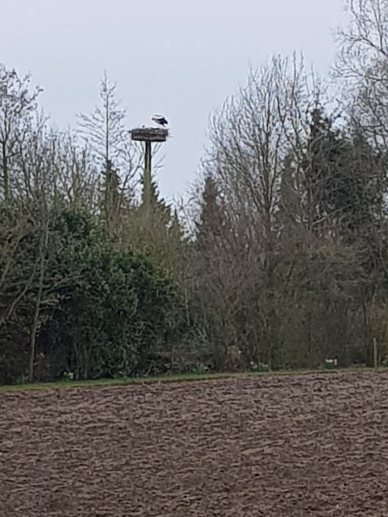 We gingen voor de 20 km die 2 x een rustpost had, allebei de keren in de Gereformeerde Kerk in Dussen. Al gauw na de start kwamen we langs een ooievaarsnest.