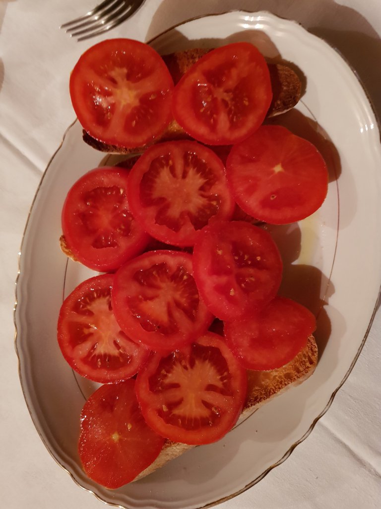 Deze keer overnachtten we in countryhouse La Palombaia waar we ook konden eten. Cynthia was een ontzettend aardige gastvrouw die ons goed verzorgde. De maaltijd was heerlijk, maar volgens mij wel genoeg voor 4 personen, we konden dan ook lang niet alles op. Eerst weer heerlijke bruschetta’s met verse tomaten en olijfolie, daarna een linzenschotel, toen een omelet met courgette, een flinke bak met sla en nog een fruitsalade als toetje.