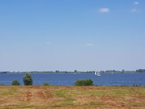 Intussen was het behoorlijk warm geworden, vooral als we onder aan de dijk liepen, na zo’n 20 km waren we blij dat we weer bij de haven waren.