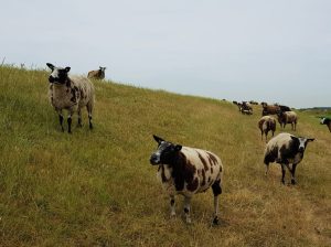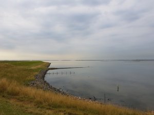 Onderweg kwamen we langs een kleurig bloemenveld en leuke schapen op de dijk en natuurlijk weer een prachtig uitzicht over het water.