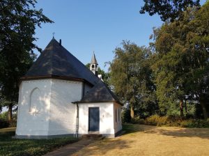 ’s Avonds hebben we bij Herberg Thijssen gegeten en de volgende morgen na een uitgebreid ontbijt gingen we op pad naar Swolgen. Nu was het een erg warme dag, we liepen ook veel in de zon en door wat omleidingen kwamen we op een totaal van 23 km. Veel water gedronken onderweg maar door de hitte werd ik op een gegeven moment een beetje misselijk. Gelukkig konden we in Tienray heerlijk op een terras zitten waar we een lekkere kop soep hebben genomen en daarna was het niet zo ver meer naar Swolgen. Tienray is bekend als bedevaartplaats “Klein Lourdes”, in de kerk is een Lourdesgrot gebouwd.