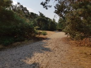 Een leuk gezicht, even later zagen we er nog meer op een ander dak. Door de warmte heb ik heel slecht geslapen, al waren de bedden prima. Na een uitgebreid ontbijt vertrokken we voor de eerste echte etappe naar Herberg Thijssen in Vierlingsbeek. Hier logeerden ook de twee mannen die we al in Gennep hadden ontmoet. Gelukkig liepen we regelmatig door het bos, want de temperaturen liepen flink op!