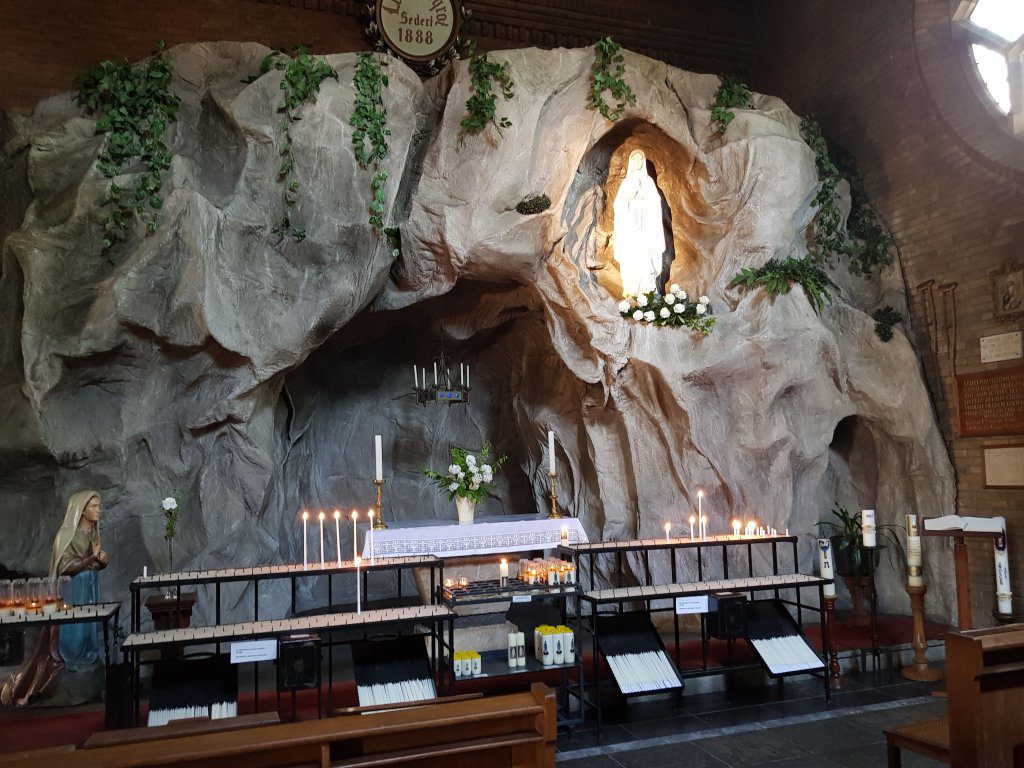 ’s Avonds hebben we bij Herberg Thijssen gegeten en de volgende morgen na een uitgebreid ontbijt gingen we op pad naar Swolgen. Nu was het een erg warme dag, we liepen ook veel in de zon en door wat omleidingen kwamen we op een totaal van 23 km. Veel water gedronken onderweg maar door de hitte werd ik op een gegeven moment een beetje misselijk. Gelukkig konden we in Tienray heerlijk op een terras zitten waar we een lekkere kop soep hebben genomen en daarna was het niet zo ver meer naar Swolgen. Tienray is bekend als bedevaartplaats “Klein Lourdes”, in de kerk is een Lourdesgrot gebouwd.