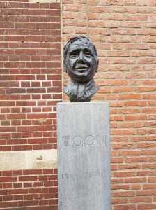 Woensdag liepen we van Millen naar Valkenburg, eerst moesten we nog naar Sittard waar de etappe eigenlijk begon. Jammer genoeg kreeg ik deze dag last van een blaar op mijn rechtervoet, precies op mijn hallux valgus en juist deze dag was behoorlijk lang, bijna 28 km. Ik was blij dat mijn schoenen uit konden toen we in Valkenburg aankwamen. In Sittard zagen we een standbeeld van Toon Hermans.