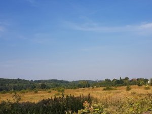 Onderweg werd het steeds heuvelachtiger en het werd weer behoorlijk warm, ik heb deze dag voor het eerst een stuk met stokken gelopen, wel fijn in heuvelachtig terrein maar ik vind het toch lastig lopen, ik moet er te veel bij nadenken.