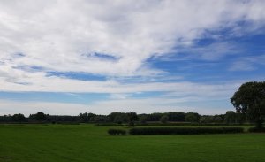 Het was hier gezellig druk, veel fietsers en wandelaars. Kijk eens wat een bijzondere lucht met een cirkel: