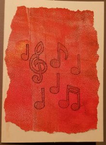 Een muziekkaart, afgedrukt op mooi reliefpapier: