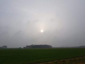 In Nieuw-Vossemeer was de tweede rust bij “het Wagenhuis” waar we gezellig een tijdje hebben gezeten. Daarna maakten we een rondje langs de sportvelden, kwamen weer uit bij Nieuw-Vossemeer en liepen toen richting de Kreekweg waar we de brug overgingen. Een wazig uitzicht vanaf de brug:
