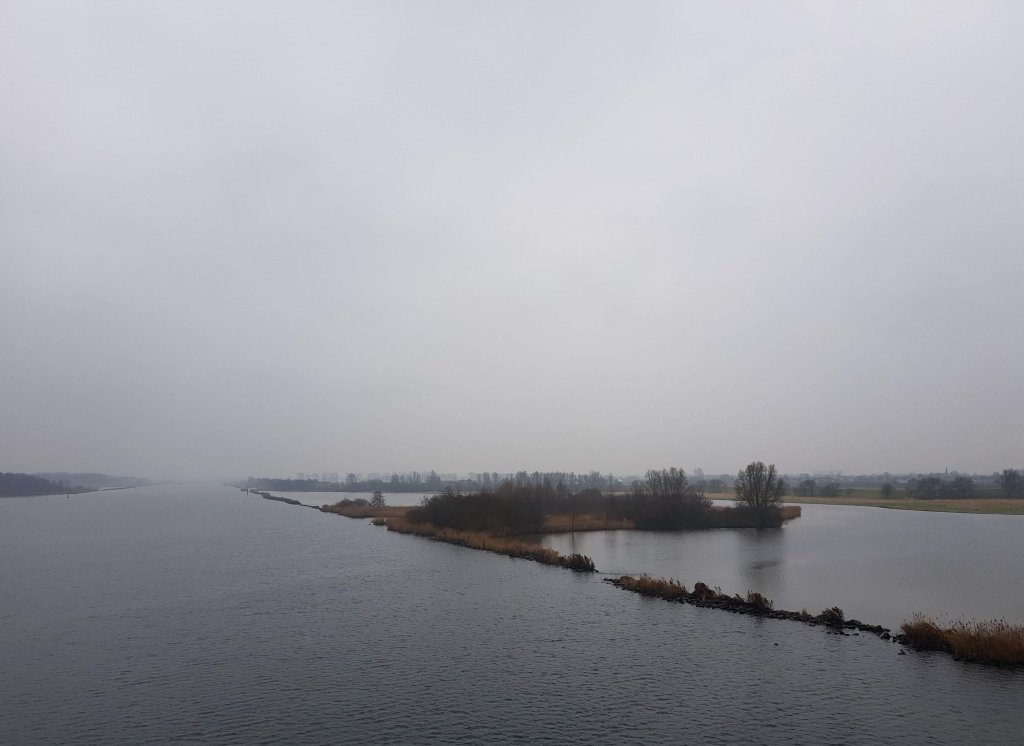 In Nieuw-Vossemeer was de tweede rust bij “het Wagenhuis” waar we gezellig een tijdje hebben gezeten. Daarna maakten we een rondje langs de sportvelden, kwamen weer uit bij Nieuw-Vossemeer en liepen toen richting de Kreekweg waar we de brug overgingen. Een wazig uitzicht vanaf de brug:
