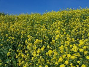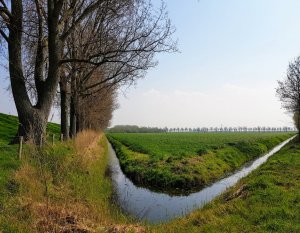 Het was heerlijk weer, we liepen met blote armen en halverwege ritste Aat zelfs zijn broekspijpen af. We liepen via het schapentunneltje naar het natuurgebied het Groote Gat en daarna weer ongeveer dezelfde weg terug, totaal zo’n 12 km. Als je de foto vergroot zie je in de verte een tulpenveld, hopelijk bloeien de tulpen nog met de tulpentocht over 2 weken.