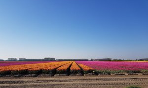 Gisteren was de jaarlijkse tulpenwandeltocht, alweer voor de 8e keer vanaf de kantine van MSV en AV Flakkee, lekker dichtbij voor ons zodat we er op de fiets heen konden. Aat wilde graag de 40 km lopen en omdat ik ‘s middags nog weg moest koos ik voor de 25 km. Het startsein werd gegeven door onze burgemeester om 8 uur, in het begin liep ik nog alleen maar al gauw voegde Corine zich bij me en met haar heb ik de hele tocht verder gelopen. Het was fantastisch weer, we konden gelijk in korte broek beginnen, prachtige tulpenvelden onderweg, muziek bij de verschillende rustpunten, kortom een geweldige tocht, het kon niet beter. Ook voor de organisatie een hoogtepunt, alle afstanden bij elkaar plus de fietsers een deelnemersaantal van ruim 2000, terwijl ze van tevoren hoopten op zo’n 1500! Half 1 waren we weer terug, waar we een medaille en cake kregen en natuurlijk konden er ook tulpen gekocht worden. Ook Aat had genoten van de tocht, hij was rond 3 uur bij de finish. Hieronder een impressie van al het moois.