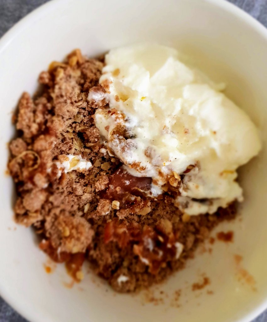 Via mijn zus kreeg ik rabarber, vandaag een lekkere crumble gemaakt met honing i.p.v. suiker.
