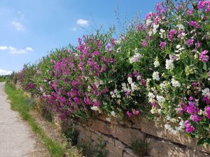 De eerste dag waren we met de trein naar Bad Dürkheim gegaan en van daaruit teruggelopen naar Deidesheim. Heel veel wijngaarden natuurlijk, het heet niet voor niets Weinsteig en af en toe prachtige doorkijkjes. De tweede dag zijn we de andere kant op gaan lopen maar omdat het laatste stuk erg steil zou zijn hebben we een andere weg terug genomen.