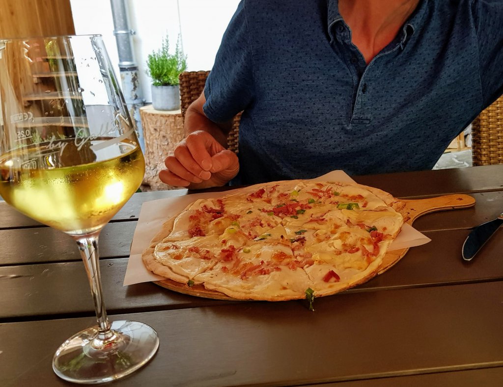 ’s Avonds zijn we uit eten gegaan en hebben we allebei voor Flammkuchen gekozen.