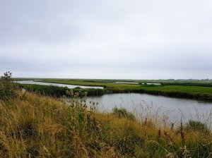 Na het strand zijn we naar Goedereede gelopen waar we wat gedronken hebben en daarna naar de andere kant van de N57, waar het erg druk was met auto’s en caravans. Wij zijn dan ook al snel het natuurgebied de Kouden Hoek ingedoken. Het pad naar het vogelkijkscherm was niet echt te doen, daarom zijn we op de dijk blijven lopen en ook hier had ik last van uitslag op mijn benen door de hoge beplanting maar het was wel erg mooi en we zagen zelfs nog een paar reeën wegschieten, te snel om goed op de foto te krijgen.