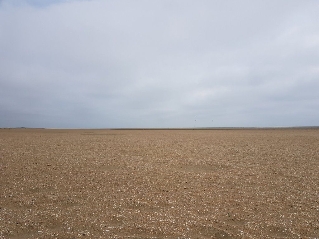 Na een zeer hete week was het vanmorgen flink afgekoeld, tijd om weer eens een rondje te gaan lopen. We hadden de auto op het grote parkeerterrein bij het strand van Ouddorp gezet en zijn eerst over het strand gaan lopen, waar helemaal niemand was.