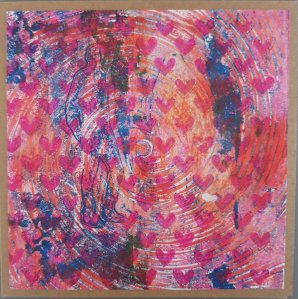 Ook heb ik zelf nog een paar kaarten gemaakt met de gelli plate, voorlopig de laatste want ik heb al mijn hobbyspullen ingepakt.