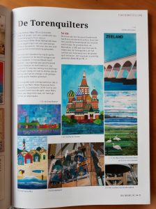 Vandaag viel het Quiltnieuws op de mat en daarin staat een leuk artikel over de tentoonstelling van de Torenquilters in Goedereede afgelopen jaar. Een paar maanden geleden werd ik benaderd door de fotograaf van het Quiltnieuws, hij was in de toren geweest en had van alle quilts een foto gemaakt en vroeg of ik wat informatie kon geven voor een artikel. Het is een leuk artikel geworden met 1 klein foutje, we komen niet elke woensdag bij elkaar maar 1 x in de maand.