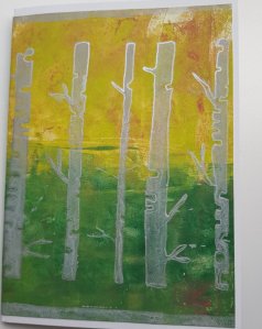 Ik heb weer een stel kaarten gemaakt met mijn nieuwe stencils en de gelli plate. Hier wat bomen.