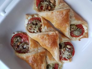 Wij hadden een gezellige jaarwisseling met zus en zwager uit Utrecht die bleven slapen. We hebben niet eens tv gekeken, alleen even rond 12 uur. Lekker zitten kletsen en spelletjes gedaan, o.a. klaverjassen wat ik al heel lang niet gedaan had maar wel leuk vind om te doen. Ik had voor ’s avonds wat lekkere hapjes gemaakt, o.a. deze groentepakketjes in bladerdeeg die in de smaak vielen.