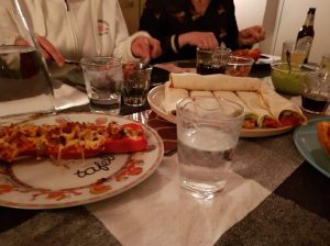 Jammer genoeg was ik behoorlijk verkouden aan het worden en had het de hele dag koud. Ik was even bang dat ik echt ziek zou worden en niet mee kon naar Middelharnis maar gelukkig knapte ik zaterdag weer wat op. Wel heb ik nu last van een kriebelhoest die vooral ’s nachts opspeelt. Zaterdag hebben we eerst Lia en Arie opgehaald in Utrecht en zijn toen naar Middelharnis gereden voor het jaarlijkse broers en zussen etentje bij Marianne en Nico. Het thema was deze keer Mexicaans en we hadden weer allerlei lekkers. We begonnen met een wraphapje, twee soorten empanada’s en tortillachips met tomatensalsa, daarna gevulde paprika’s, burrito’s, fajita’s, guacemole, chili con carne, rijst, twee soorten salade, en als toetje een fruitsalade, yoghurtpudding met mango en een Mexicaanse chocoladetaart. Het was weer erg gezellig zo met zijn allen, alleen onze oudste broer en schoonzus waren er niet zodat we met 13 personen waren. Alles was even lekker en er was dan ook niet veel meer over aan het eind van de avond. Na nog koffie en thee gingen de meesten weer naar huis en konden wij met zijn vieren blijven slapen. Gistermiddag zijn we weer via Utrecht naar huis gereden. Het was echt bizar, 16 februari en de temperatuur gaf 17 graden aan, het waaide ontzettend hard en toen we thuis waren kregen we ook nog een gigantische stortbui.