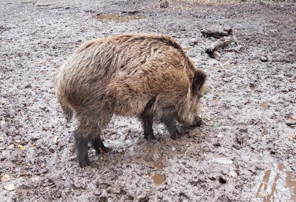 We kwamen 1 zwijn tegen die niet op of om keek naar al die wandelaars, hij bleef onverstoorbaar in de modder wroeten.