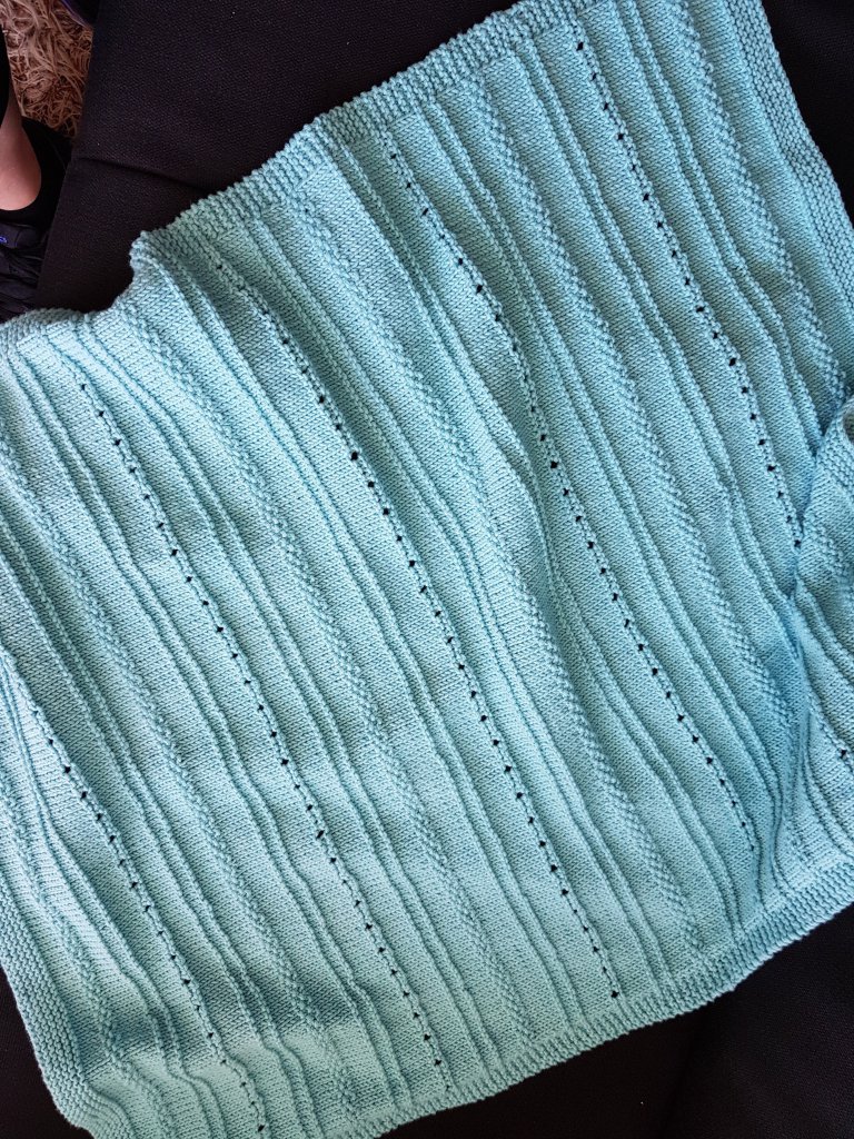 Breien vind ik een ontspannen bezigheid, je kan het elk moment oppakken en als het patroon niet te ingewikkeld is kan het ook tijdens het tv kijken. Als cadeautje heb ik een baby/poppendekentje gebreid.