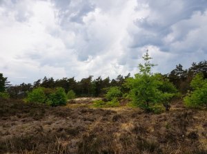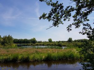Na de wandeling reden we naar ons hotel en na ons even te hebben opgefrist hebben we nog een rondje door het dorp gedaan. Gelukkig konden we dineren in het hotel, de gewone restaurants waren nog dicht. Alles was prima geregeld met voldoende afstand tussen de gasten en een looproute, het was leuk om weer eens buiten de deur te eten. De volgende morgen zijn we naar het Nationaal Park Drents Friese Wold gereden waar we wat kleine routes aan elkaar geplakt hebben. Het was nu een stuk minder warm en we hadden ook af en toe een bui, gelukkig hadden we ons regenjack meegenomen en konden zo toch genieten van de prachtige omgeving. Hier was het opvallend rustig, alleen in de buurt van de parkeerplaatsen zag je wat meer mensen, maar echt druk was het nergens.