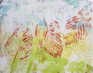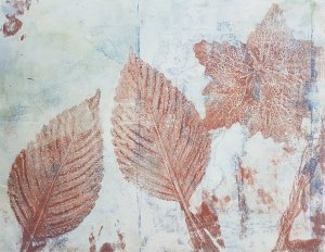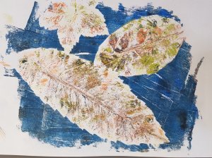 Agnes wilde weten hoe ik de afdrukken met de bladeren had gemaakt, dus kwam ze gisterochtend gezellig meedoen. Ze had zelf een paar mooie bladeren meegebracht waarmee we lekker hebben zitten spelen.