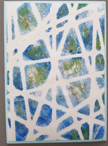Soms heb je zulke mooie kleuren op je plate verzameld dat je er alleen maar een eenvoudig stencil over hoeft te leggen om weer een leuke kaart te kunnen maken.
