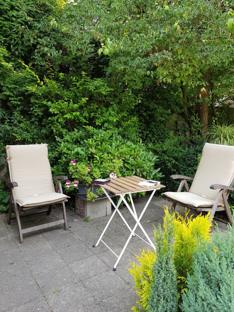 ‘s Middags in de theetuin achter een boekhandel een lekker kopje thee gedronken.