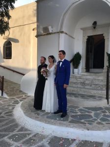 Afgelopen zondag was dan eindelijk het kerkelijk huwelijk en bruiloftsfeest van zoon Derk en Natasha op Naxos in Griekenland. We hadden alles geboekt en zouden een week blijven, maar 2 dagen voor vertrek gooide de Nederlandse regering roet in het eten: alle Griekse eilanden kregen code oranje ☹️. De meeste Nederlandse gasten zegden af en ook wij besloten niet te gaan, met pijn in ons hart, we hadden er zo naar uitgekeken. Gelukkig gingen broer en zus wel en ook de gasten uit Duitsland waren allemaal aanwezig. Wat is het dan fijn dat er allerlei communicatiemiddelen zijn, i.p.v. een toespraakje ter plaatse hebben we het bruidspaar een videoboodschap gestuurd en Lennert heeft namens de familie een toespraakje gehouden. Ook kregen we regelmatig foto’s toegestuurd, zodat we er toch een beetje bij waren.