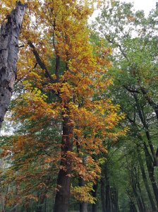Zaterdag liepen we een tocht uit het boekje Wandelen op de Veluwezoom vanuit Dieren. Deze tocht hadden we in augustus ook gelopen, maar nu in de herfst zag het er toch weer anders uit. Ik kreeg wel een beetje last van mijn knie door al het klimmen en dalen, maar een paar dagen rustig aan en het gaat weer beter. De herfst laat zich steeds meer zien al zijn de meeste bomen nog groen.