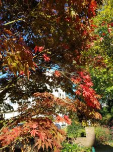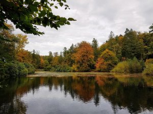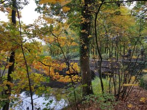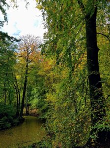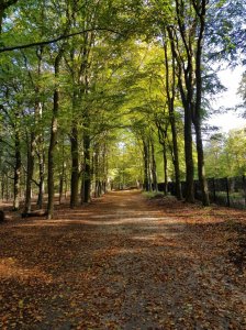 Vandaag zou het heerlijk weer worden, tijd dus voor een mooie wandeling. We reden eerst naar het station in Velp en liepen toen langs prachtige huizen, door een mooi parkje waar we op een bankje koffie en thee dronken en daarna de bossen in. Nu was toch duidelijk te zien dat het herfst is met al die prachtige kleuren. Het werd zo warm dat de jas zelfs uit kon, echt genieten.