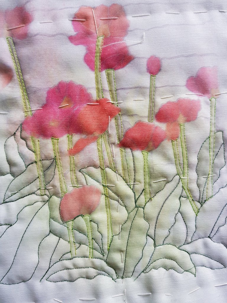 De afdruk van de bovenste foto ben ik aan het bewerken met de naaimachine.