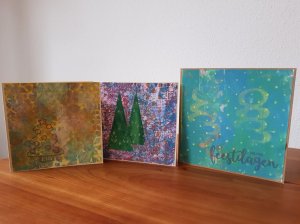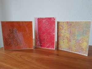 Omdat we door de coronamaatregelen niet met ons groepje Achterdoek bij elkaar kunnen komen doen we af en toe wat met een klein groepje. Woensdag gaf ik een mini workshop werken met de gelli plate aan 2 leden. De één had er nog nooit mee gewerkt, de ander al wel eerder. Het was een gezellige ochtend en de dames vonden het erg leuk.