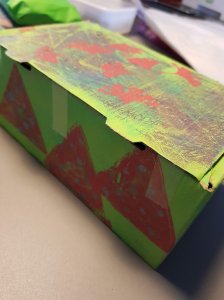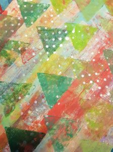 Omdat de winkels gesloten zijn kwam ik in de knel met mijn inpakpapier voor de kerstcadeautjes. Met wat verf en de gelli plate en pakpapier van de verhuizing maakte ik zelf wat kleurig papier.