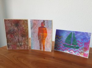 Gisteren weer wat kaarten gemaakt met de gelli plate, vandaag hier en daar nog wat extra’s toegevoegd met een stempeltje, zo heb ik weer een voorraadje.