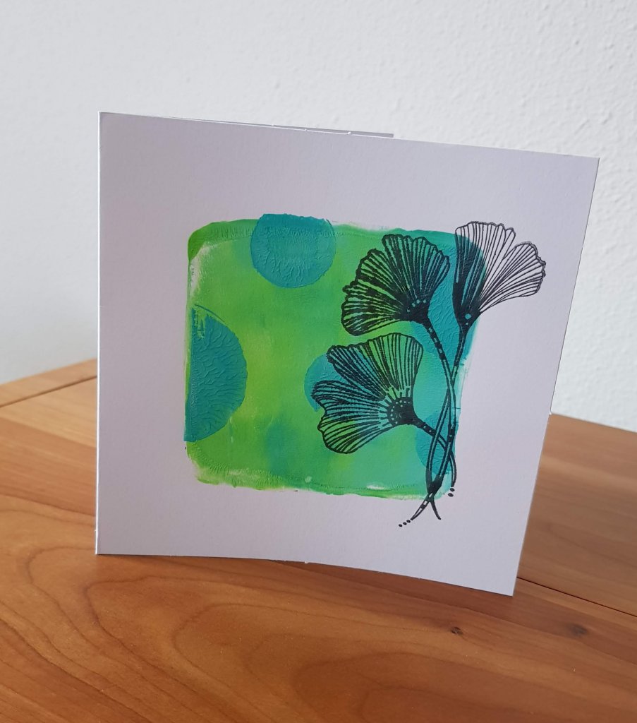Ook kregen we afgelopen week een leuke kaart van mijn jongste zus, die ook helemaal verslaafd is aan de gelli plate, echt mijn kleurtjes!