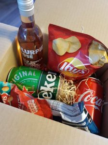 Bij thuiskomst lag er een briefje van Postnl. in de bus dat we een pakje konden ophalen, een leuke verrassing van broer Maarten die volgende week 60 wordt. We kunnen het zo toch een beetje meevieren.