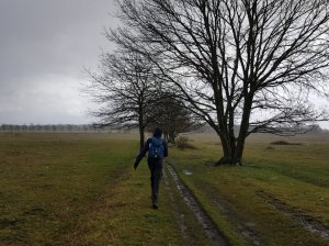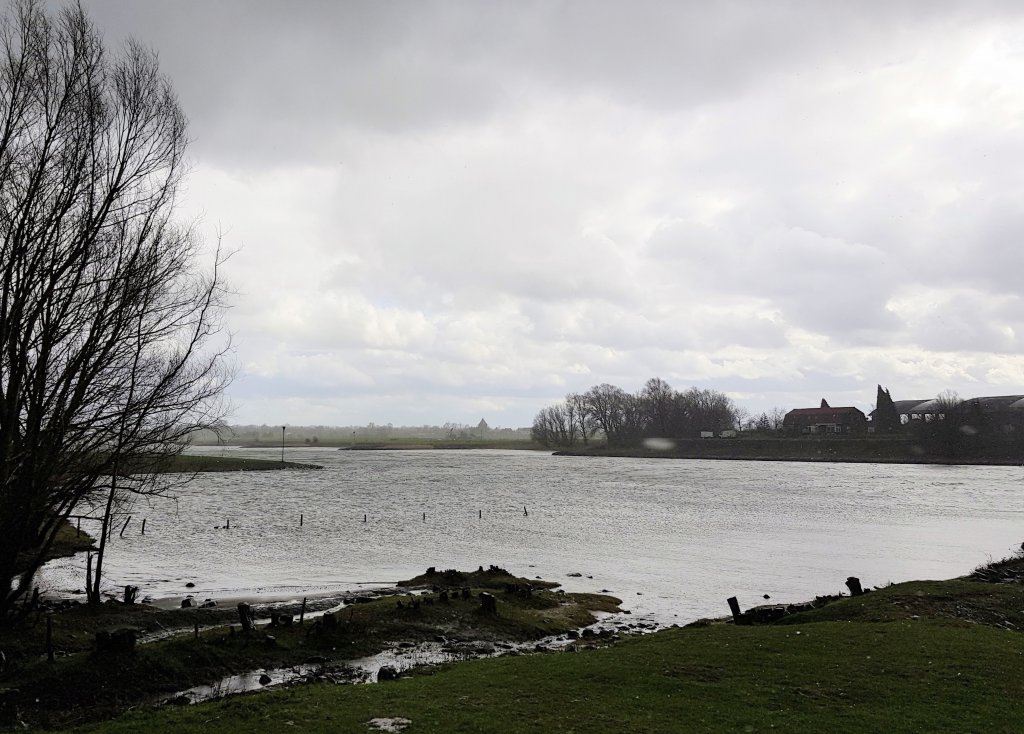 Hierna liepen we een stuk langs de uiterwaarden van de Rijn, op sommige stukken was het erg glibberig door de regen en moest je goed uitkijken. Na een stukje door het winkelcentrum kwamen we weer bij de auto, het was een inspannend tochtje geweest en we zaten flink onder de modder.