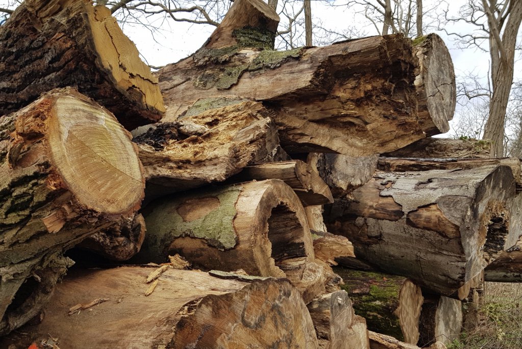Tijdens een opklaring hebben we in de luwte van een stel boomstammen even zitten eten, niet al te lang want dan werd het te koud.