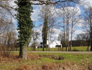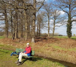Vandaag weer een route met zwarte pijltjes gelopen, deze keer vanaf de TOP Groot Nibbelink bij Sinderen, rondje Idinkbos, 12 km. Het waaide flink, maar door het zonnetje en een temperatuur van rond de 15 graden kon de jas toch al snel uit. Het was opvallend rustig deze route, af en toe wat fietsers en een enkele wandelaar. Halverwege hebben we lekker op een bankje in de zon gezeten. Achter ons stond een prachtig wit huis en voor ons konden we ver kijken.