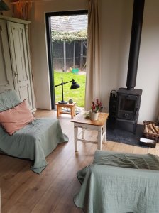 Wat heerlijk om even weg te zijn. Het huisje ziet er enig uit. Heerlijk met die kachel. Die hadden jullie wel nodig na die wandeling, wat een nattigheid zeg.