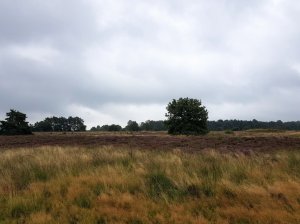 Op het ogenblik staat de hei overal in bloei en dat wilden we wel eens zien. In het weekend is het vaak druk, dus besloten we gisteren een tocht te lopen bij het Rozendaalse Veld van 17 km. Deze tocht hebben we al vaker gelopen, maar dan in de winter. Jammer was wel dat het de hele dag bewolkt bleef en we regelmatig een buitje hadden, wat dat betreft hadden we de tocht beter vandaag kunnen lopen. Een voordeel was wel dat het heerlijk rustig was, we zagen meer fietsers dan wandelaars.