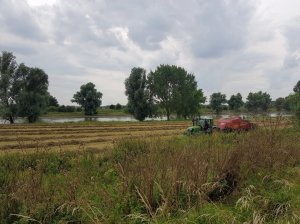 Tot slot lopen we nog een stukje langs de IJssel waar het gras gemaaid en geperst wordt.