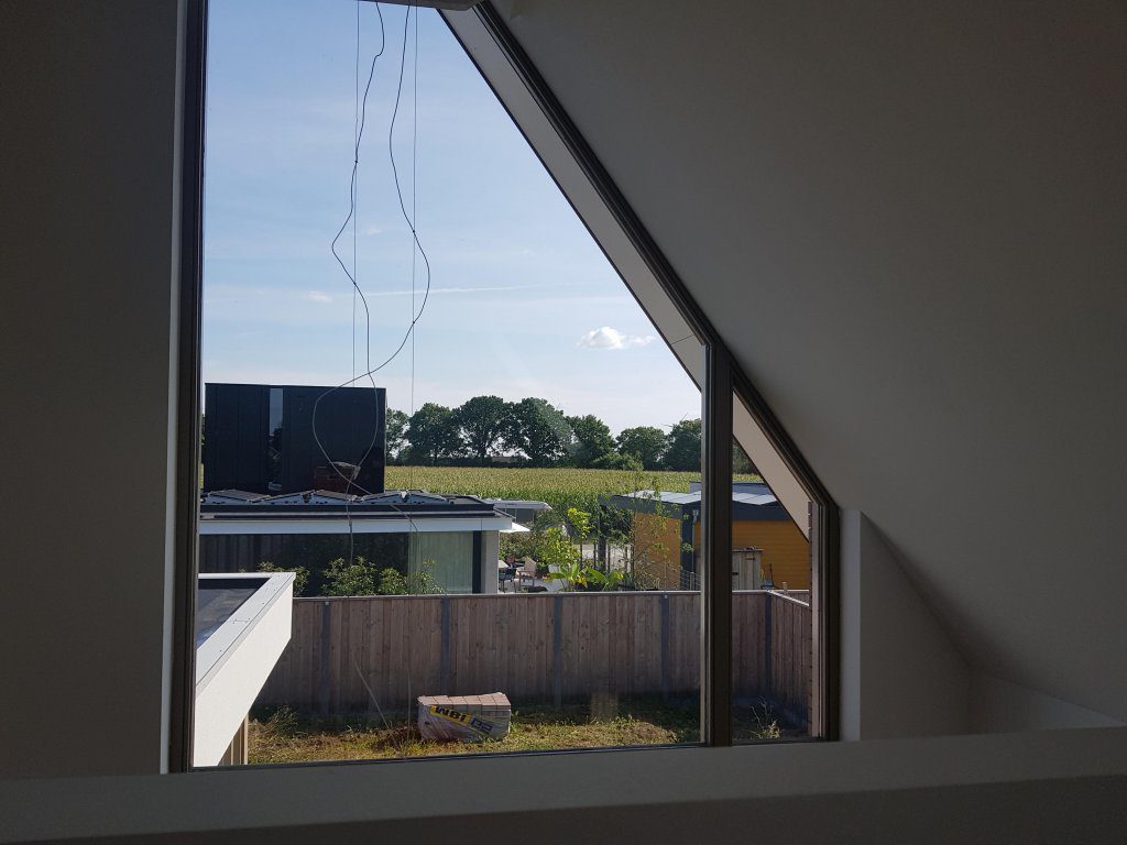 Ik ben er erg blij mee en heb de laatste dagen al verschillende keren boven gezeten. Het fijne is dat je door de vide toch contact houdt met beneden. Mijn uitzicht van achter de naaimachine: