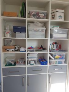 Wat een prachtige werkruimte. En dan die kasten, heerlijk als je alles overzichtelijk kwijt kunt.