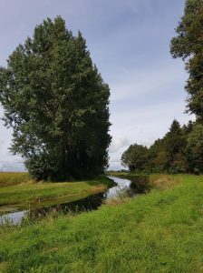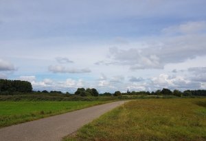 Maandag was het heerlijk wandelweer en daarom zochten we een klompenpad in de buurt uit. Het startpunt van het Bevermeersepad was in Angerlo, nog geen kilometer van ons huis, dus liepen we daarheen, totaal kwamen we op 12 km. Het was een leuk pad, eerst langs het Bevermeer waar een gemaal is en daarna veelal over lange graspaden.