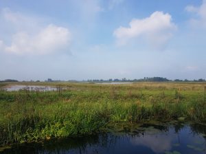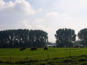 Ook liepen we over heel smalle paadjes, waarbij je echt op moest passen om niet in de greppel te stappen. Gelukkig kwamen we niet veel mensen tegen, want 1,5 meter afstand houden was hier echt niet mogelijk. We kwamen langs een gemaal, liepen langs koeien en zagen veel watervogels, een mooi gezicht en ze lieten zich ook goed horen.